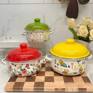 平底泡面碗宿舍学生猪油罐搪瓷搪瓷锅加厚双耳家居猪油罐带盖