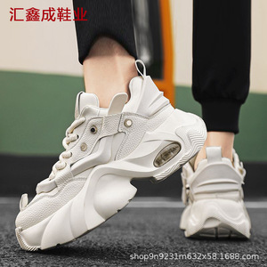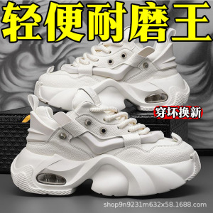 网红爆款男鞋春秋透气运动休闲青少年跑步气垫厚底增高小白老爹鞋