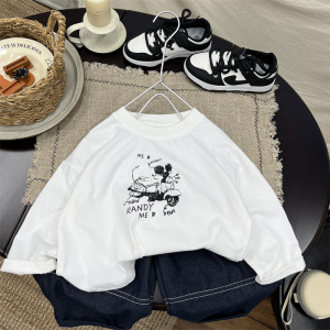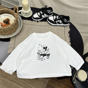 秋季新款儿童韩版趣味涂鸦短袖男宝女宝洋气卡通印花上衣长袖T恤
