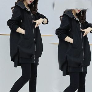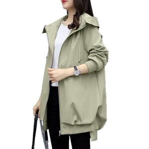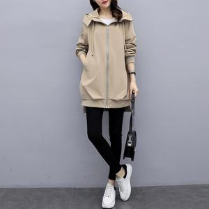 有里布2025春秋韩版卡其色宽松休闲连帽风衣女中长款黑色气质外套