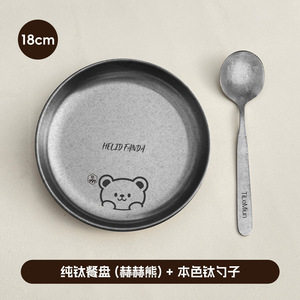 纯钛餐盘18cm (赫赫熊)+本色钛勺子