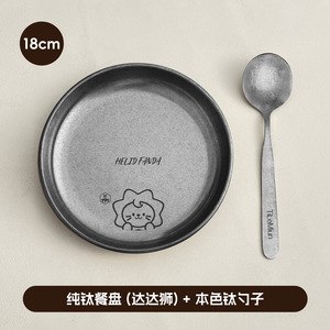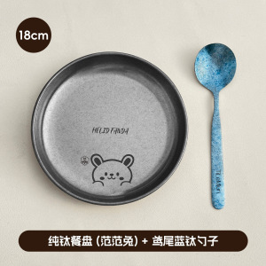 纯钛餐盘18cm (范范兔)+本色钛勺子