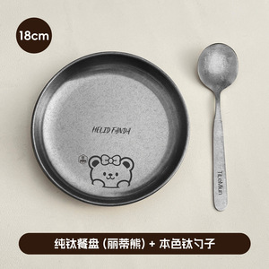 纯钛餐盘18cm (丽蒂熊)+本色钛勺子