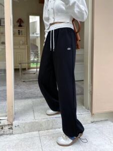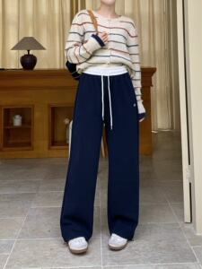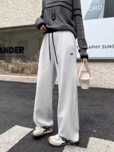 华棉运动裤女2025秋新款休闲高腰直筒卫裤遛弯慵懒风拖地阔腿裤