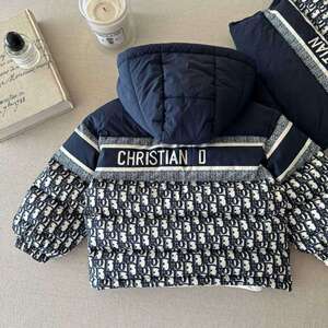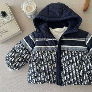 儿童加棉男冬季款小童满印冬装潮牌短款洋气宝宝连帽外套女棉服