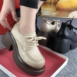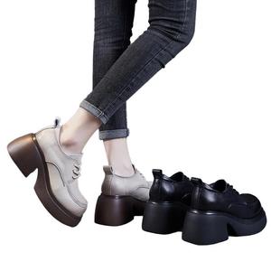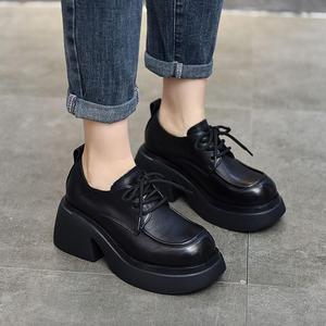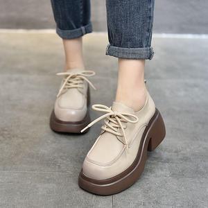 乐福鞋女鞋真软皮厚底软底增高跟2025新款单鞋系带春季厚底松糕鞋