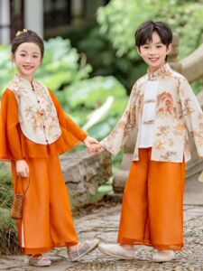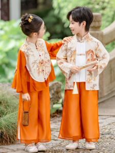 女童新中式国风旗袍汉服连衣裙子春秋套装2025新款儿童诗朗诵表演
