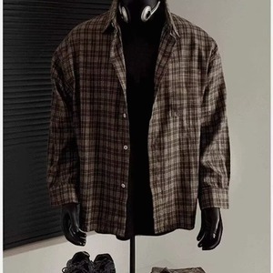 复古撞色vintage格子衬衫男春秋季高级感格纹宽松休闲百搭长袖衬