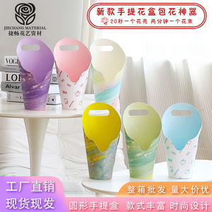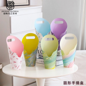 圆形手提盒蝴蝶兰礼盒INS花盒圆筒手提插花盒鲜花花束手工diy材料