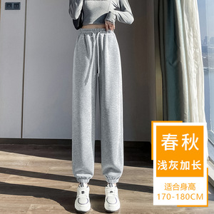 高个子运动裤女早秋新款2025白色卫裤秋季束脚薄款加长版休闲裤子