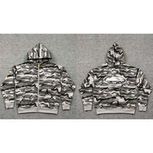美式 HOODIE恶魔岛迷彩印花拉炼卫衣男高街开衫连帽衫女