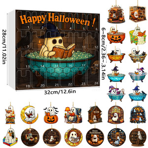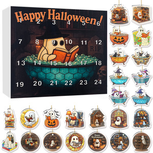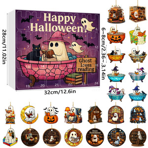 跨境阅读之夜万圣节倒计时盲盒 可爱幽灵看书造型圣诞树挂饰
