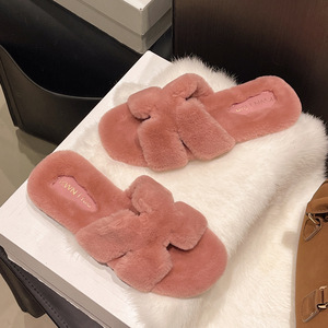 简约时尚2025新款秋冬毛毛拖鞋女外穿百搭厚底增高一字棉拖鞋女