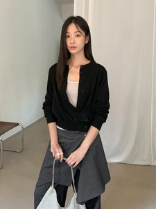 TG 不规则侧扣针织开衫女2025秋季新款简约设计纯色显瘦毛衣25703