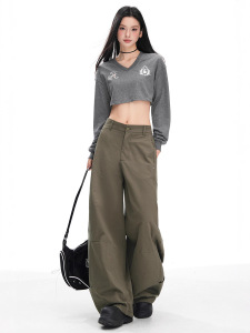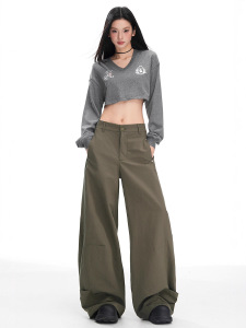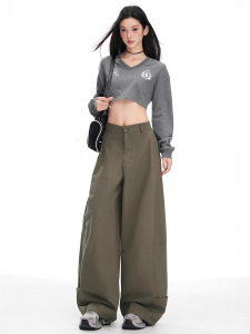 军绿色直筒休闲裤女2025初秋新款美式显瘦宽松百搭工装阔腿裤子