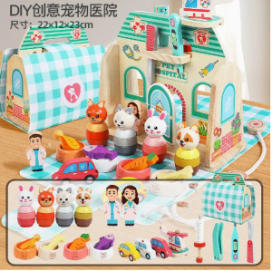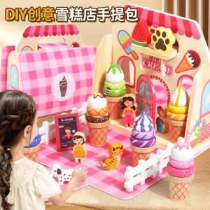 儿童木制DIY宠物手提 包角色扮演过家家甜点创意套装仿真益智玩具
