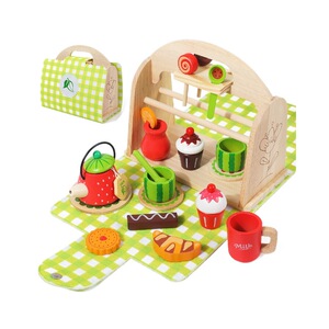 早教仿真儿童过家家下午茶甜品蛋糕售卖泡茶壶杯茶具套装木制玩具