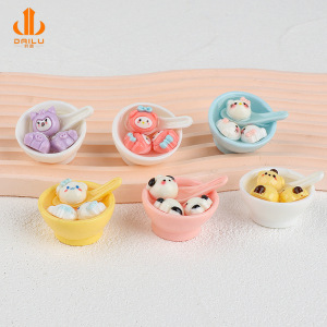 卡通三丽鸥汤圆碗微缩食玩 diy饰品奶油胶发饰微景观装饰挂件配件