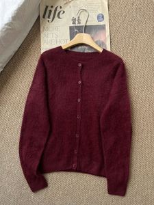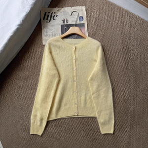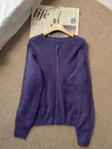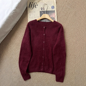 25秋冬新品纯色拉绒羊绒羊毛衫无缝圆领开衫毛衣女秋冬