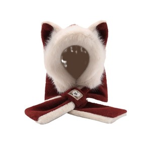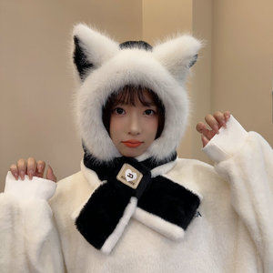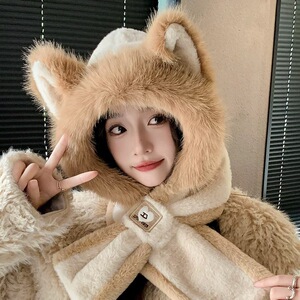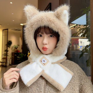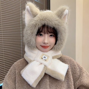 可爱小狐狸围脖帽冬季加厚保暖防寒两件套帽子围巾一体户外骑行帽