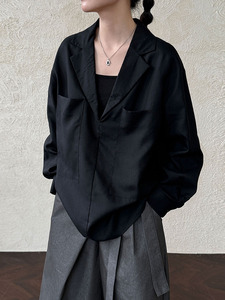 NS 韩系极简设计感V领宽松衬衫女早秋新款通勤时髦上衣3672