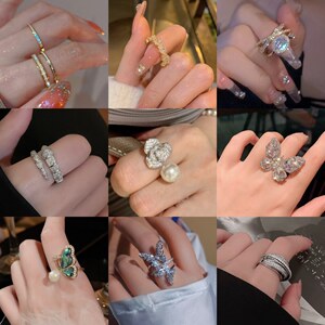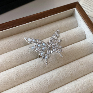 超闪锆石蝴蝶珍珠开口戒指轻奢高级感指环时尚精致个性百搭手饰女
