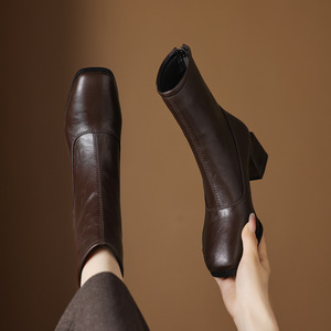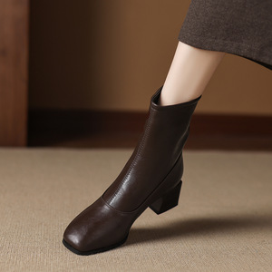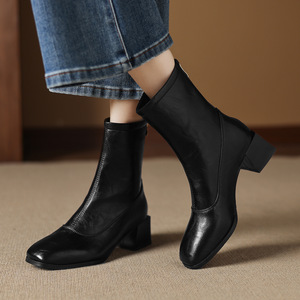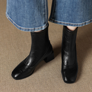 32--43大小码靴子新款粗跟低跟短靴女骑士靴2025秋冬简约女靴跨境