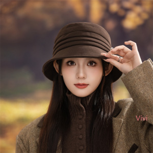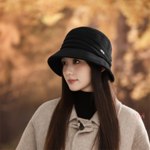 日系文艺复古百搭褶皱渔夫帽秋冬帽子女款保暖水桶帽户外防风盆帽