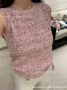 25夏季新款法式优雅肌理感圆领和纸纱编织无袖修身马甲背心上衣女