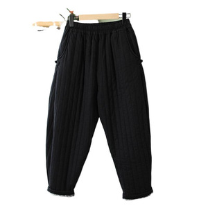 2025冬季新款保暖夹棉加厚复古羽绒棉裤女外穿松紧腰宽松休闲长裤