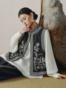 重工刺绣中国风真丝香云纱马甲2025高级感新中式马夹显瘦百搭上衣
