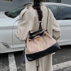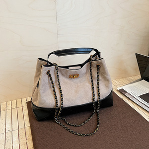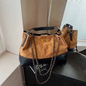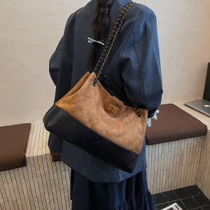 复古麂皮绒手提包韩版大容量流浪包包女通勤百搭斜挎包菱格链条包