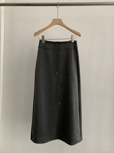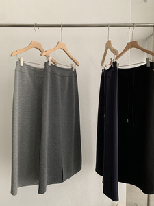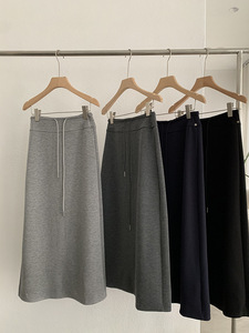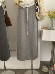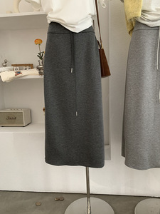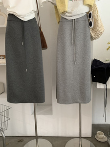 欧玛莱 高腰A字中长裙显瘦直筒抽绳后开叉卫裙早秋新款半身裙4346