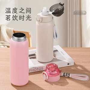 跨境大容量800ml保温杯男户外运动水壶316不锈钢旅行水杯女吸管