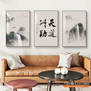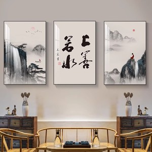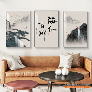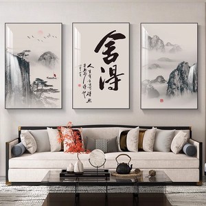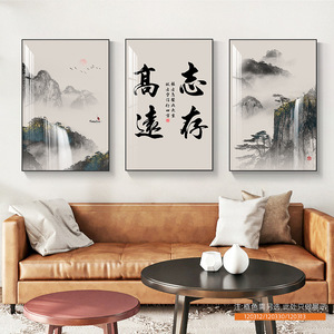 客厅装饰画舍得山水画新中式沙发背景墙挂画茶室办公室书法三联画