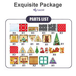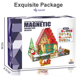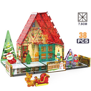 跨境场景积木玩具7.5cm圣诞磁力片圣诞雪人家庭亲子互动益智玩具