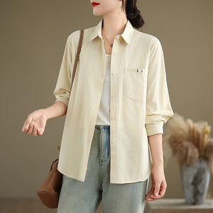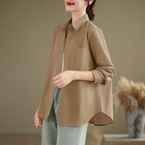 棉麻衬衫外套女2025秋款大码宽松显瘦上衣洋气时尚秋装