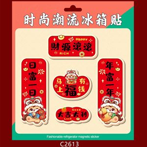 批发2026马年生肖磁吸冰箱贴套装软磁潮流小对联潮语财神冰箱车贴