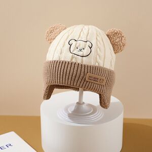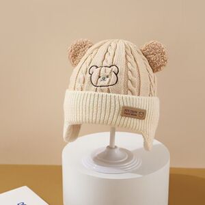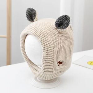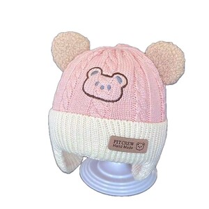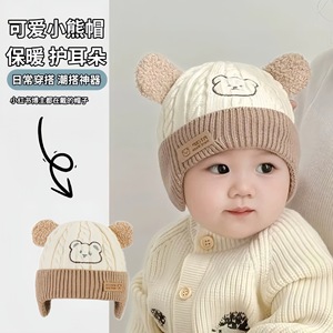宝宝帽子秋冬季可爱毛球套头帽婴幼儿针织毛线加厚护耳男女超萌潮