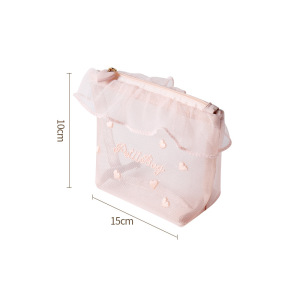 跨境荷叶边网纱包高颜值少女心ins 风学生便携透气口红小样收纳包