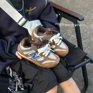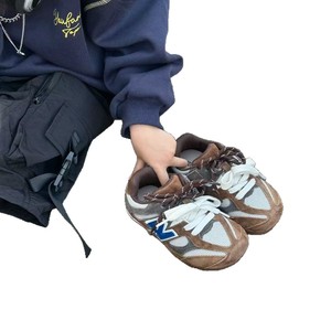 心爱足2025秋季新款复古N字拼色男童鞋休闲鞋网面透气女童德训鞋