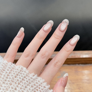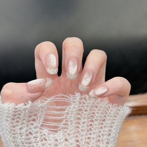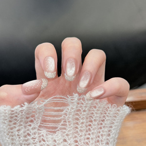 会有猫 海盐玫瑰 贵气亮粉爆闪玻璃珠猫眼法式御姐手工穿戴甲
