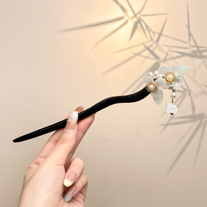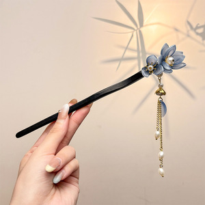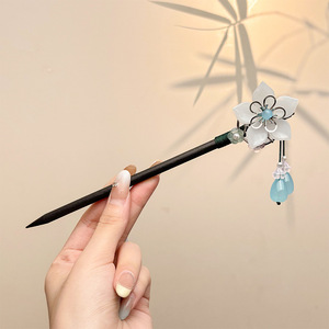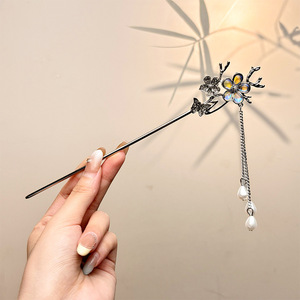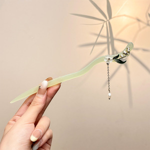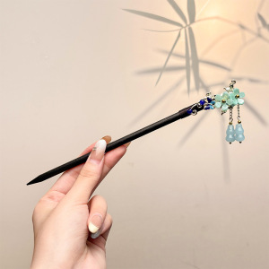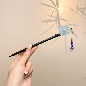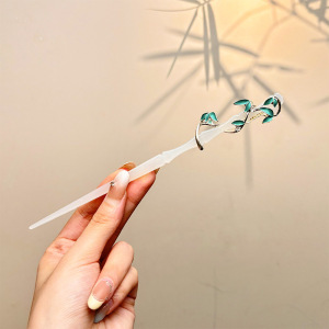 49#盘龙竹湖蓝色叶子发簪 (袋装)