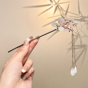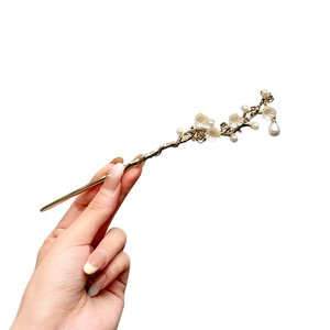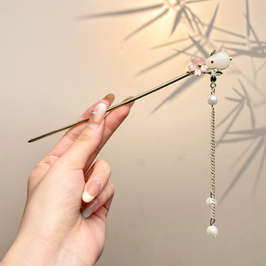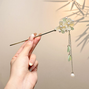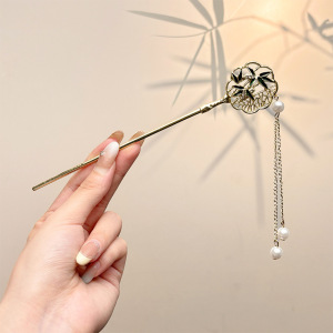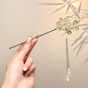 13#白色莲花珍珠花金钗流苏发簪(袋装)