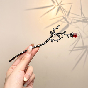 39#一枝梅暗红发簪-枪黑色 (袋装)