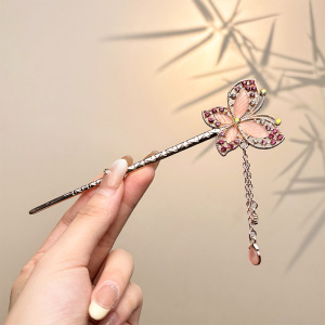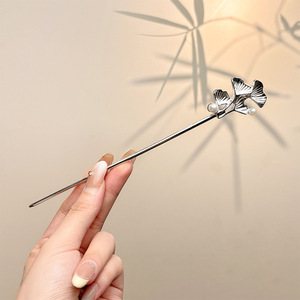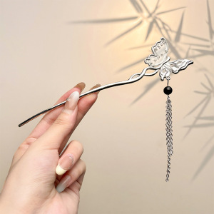 30#双蝴蝶风铃吊坠发簪-银色 (袋装)