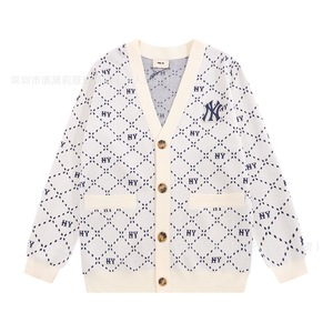 25秋冬潮牌MLB高品质复古老花满印刺绣针织开衫毛衣男女明星同款
