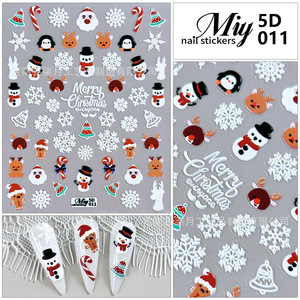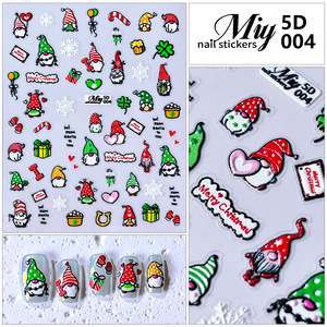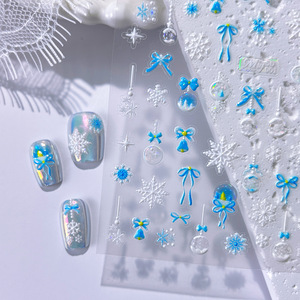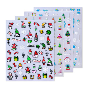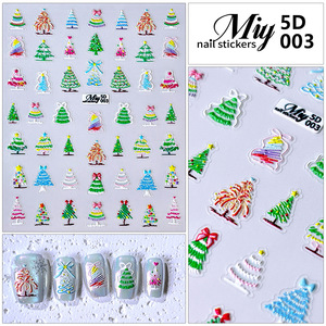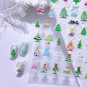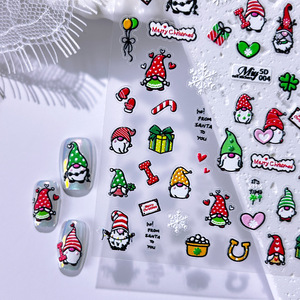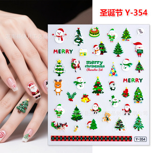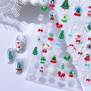 25年新款圣诞节老人美甲贴纸5d浮雕贝壳光水晶球圣诞树立体指甲贴