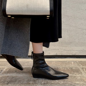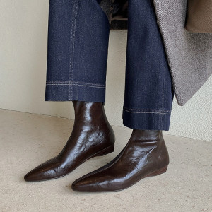 弹力短靴女瘦瘦靴子秋冬新款小方头后拉链平跟韩版裸靴女单靴短靴