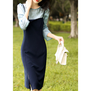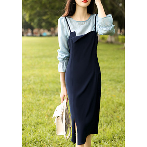 法式赫本气质百搭吊带裙女2025秋季新款套头高级轻奢开叉裙两件套